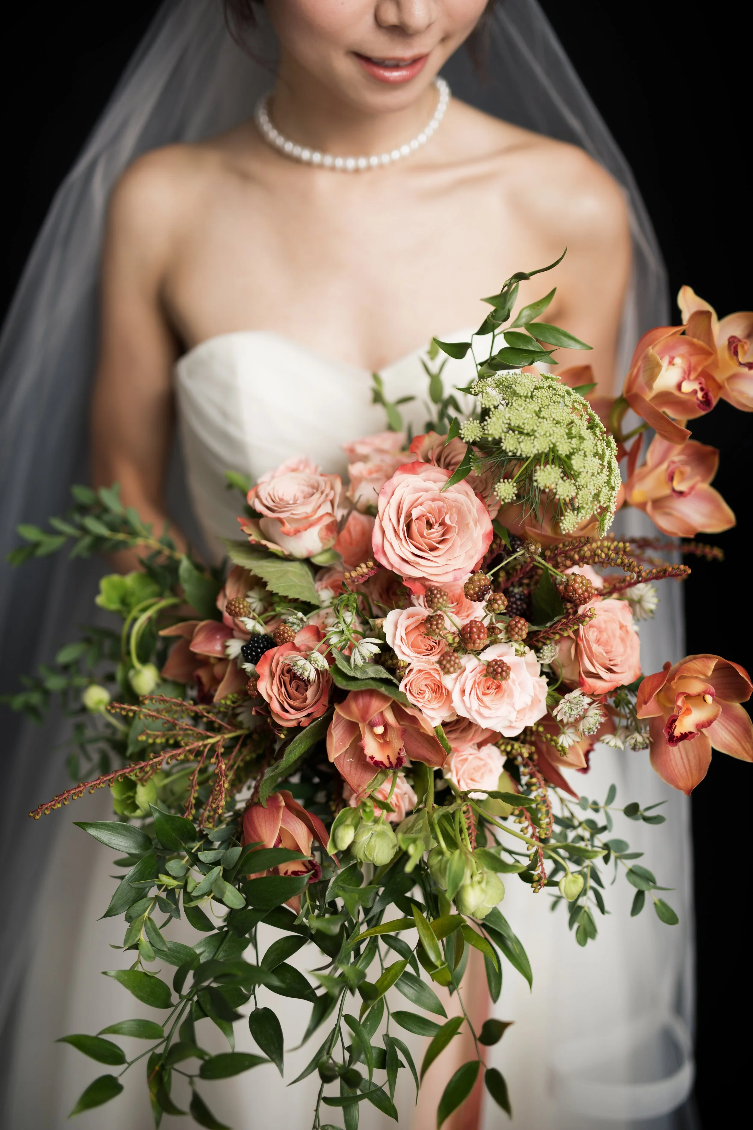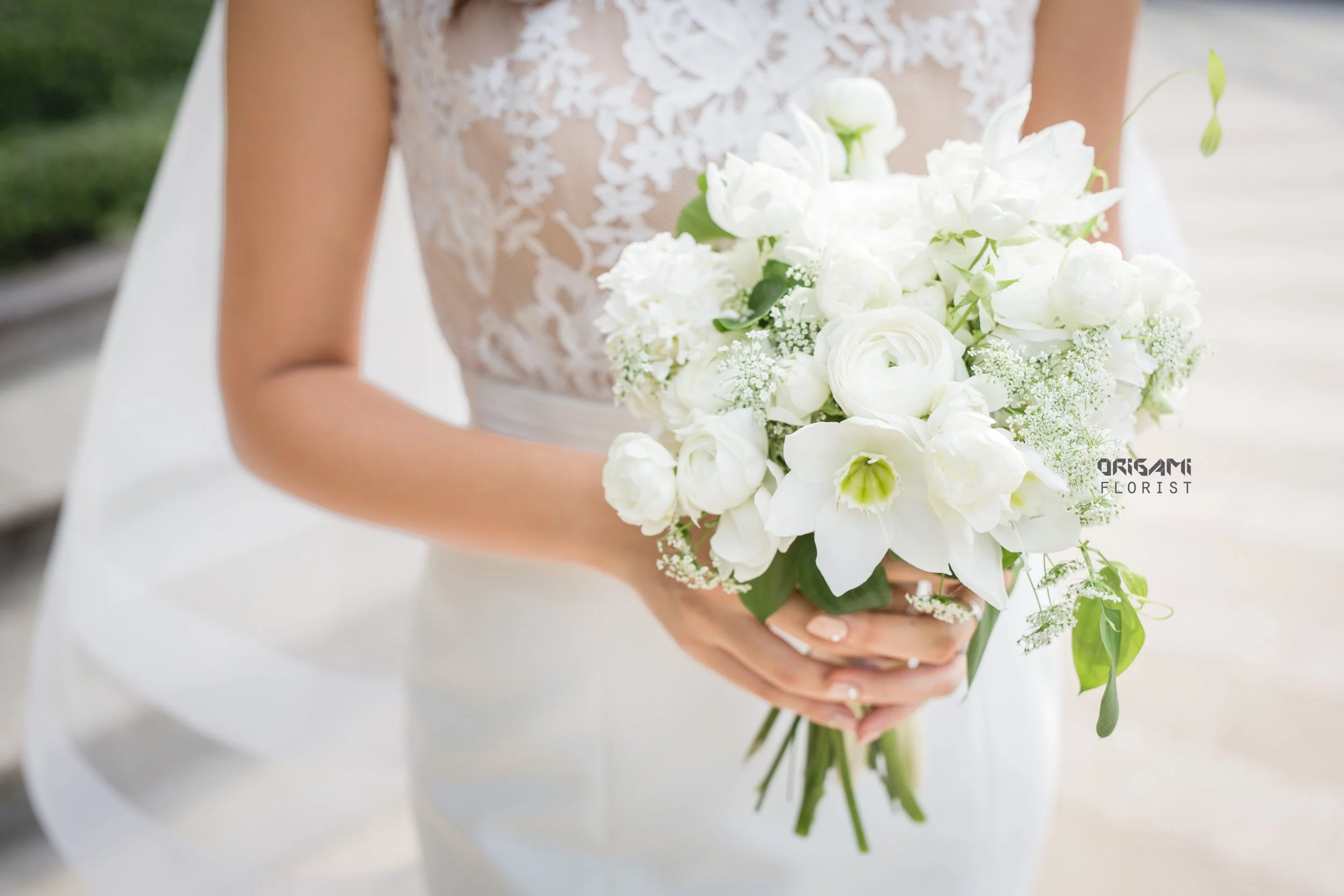 Roses to symbolize love and passion, while lilies represent purity and beauty, the bridal bouquet serves as a focal point, drawing attention to the bride as she walks down the aisle. symbol of beauty, love, and personal style on the wedding day